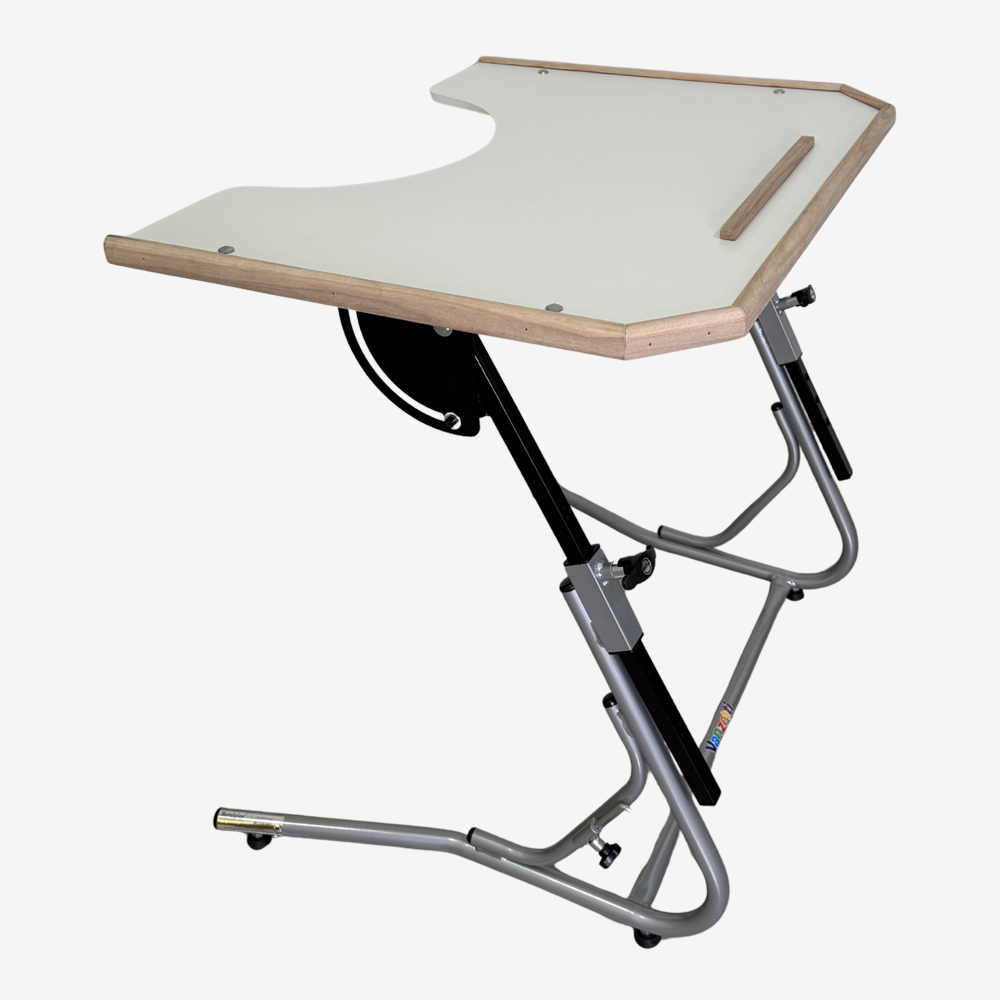 • Tampo da mesa com recorte com acabamento em MDF, com regulagem milimétrica de inclinação;